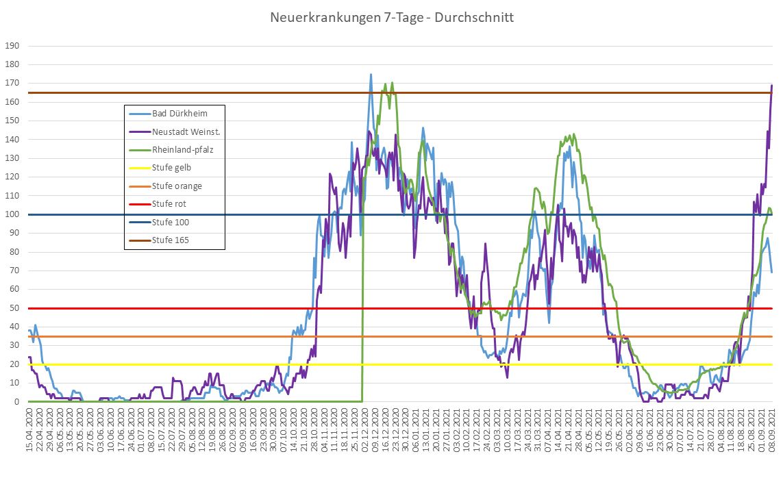 Bedingt durch die hohen Inzidenzwerte im Landkreis Bad Dürkheim der Vergangenen Tage mit über 100, erlässt der Kreis Bad Dürkheim eine neue Allgemeinverügung, gültig ab Sonntag 0 Uhr. Die Verfügung wird am morgigen Samstag erlassen, sodass sie ab Sonntag, 0 Uhr, in Kraft treten wird. Die Coronaverordnung des Landes Rheinland-Pfalz macht dies erforderlich.