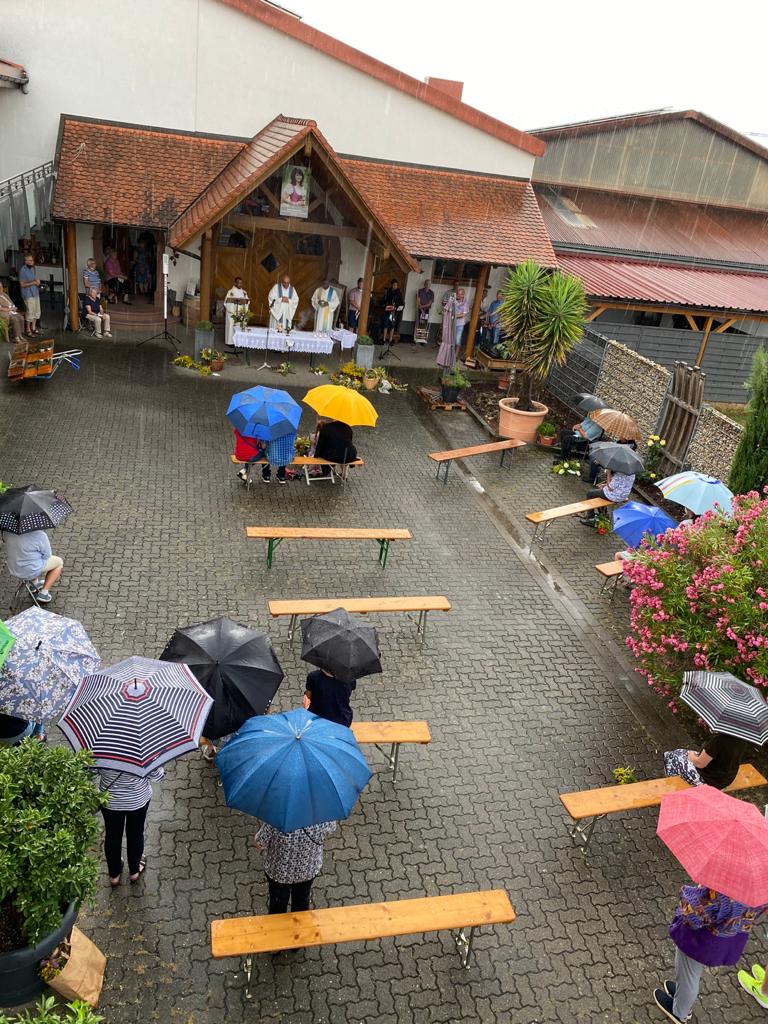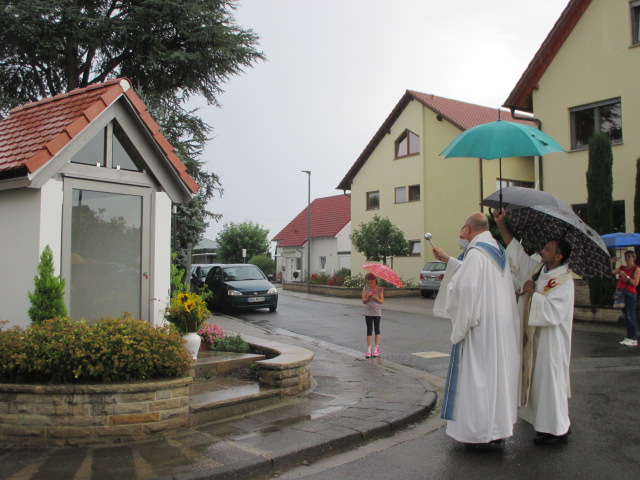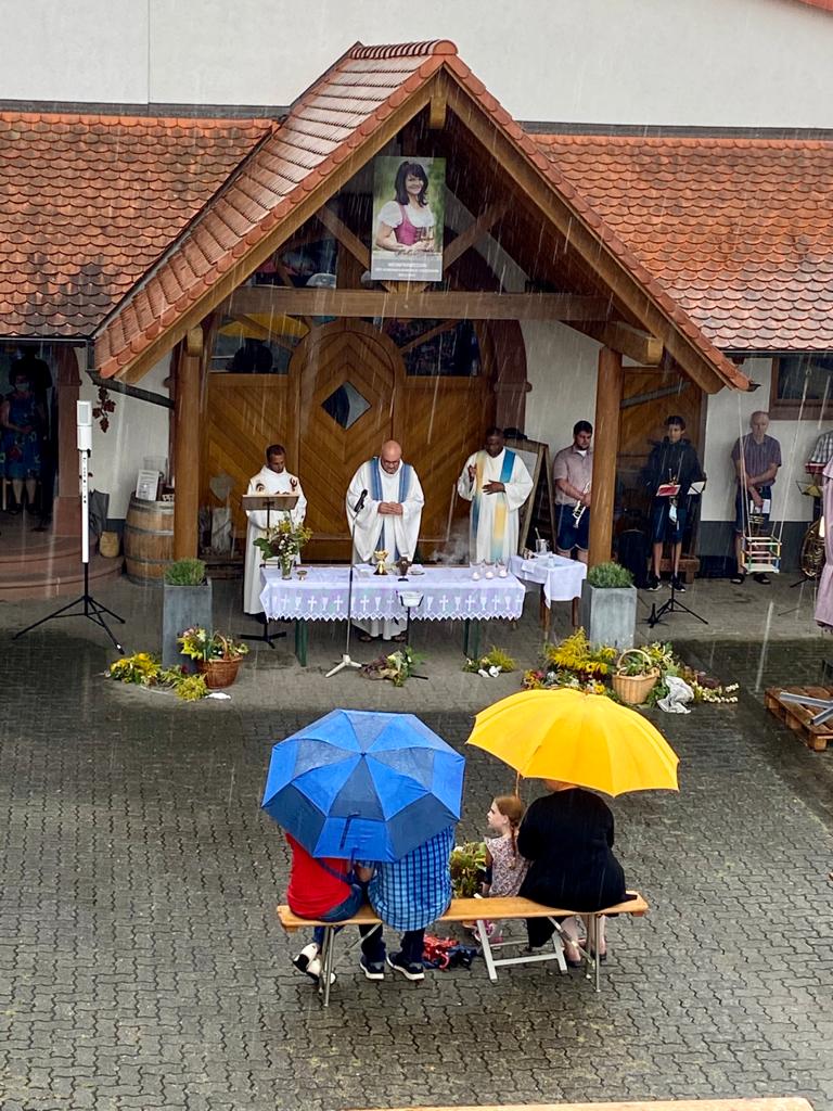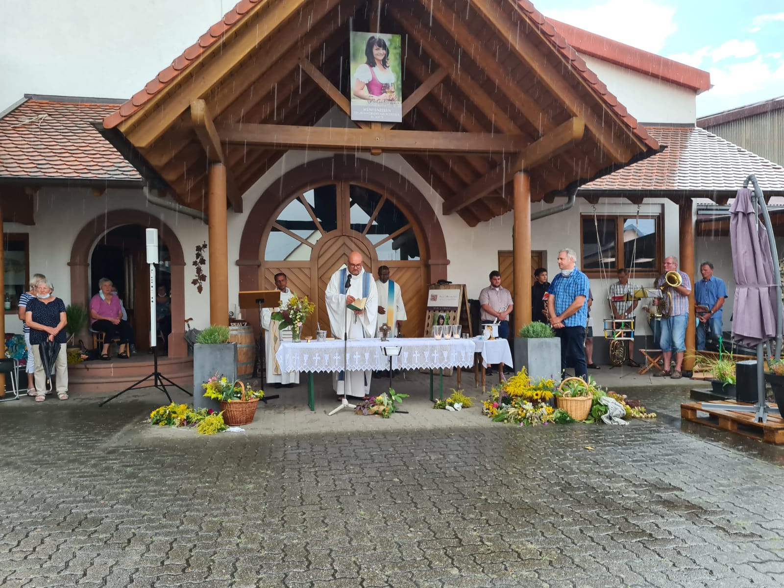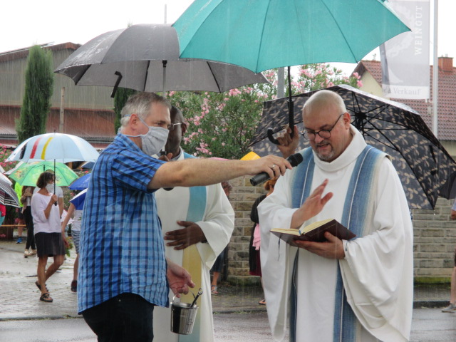 Im Rahmen des Vorabendgottesdienstes zu Maria Himmelfahrt, wurde unser Bildstock am Friedhof von Herrn Pfarrer Braun eingeweiht. Unterstützt von Kaplan Naigin und Pfarrer Dr. Michel Libambu, der zur Zeit zu Besuch in unserer Pfarrei weilt. Trotz Regen, waren viele zum Gottesdienst gekommen.