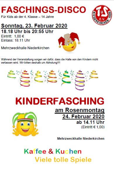 Für Kinder und Jugendliche (4.Klasse bis 14 Jahre) findet am Sontag, 23. Februar ab 18:18 Uhr eine Faschingsdisco statt.