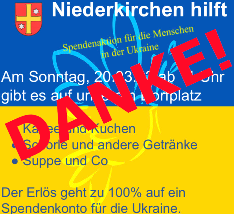 Ich bedanke mich recht herzlich, bei allen, die zum Gelingen der #Niederkirchenhilft - Aktion beigetragen haben.