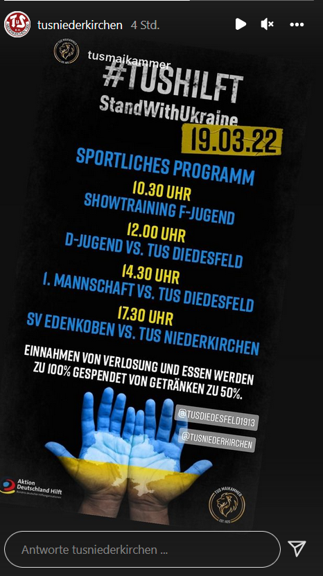 Auch der TuS Niederkirchen unterstützt am Wochenende bei der Hilfsaktionen #TUSHILFT zu Gunsten der Ukraine.