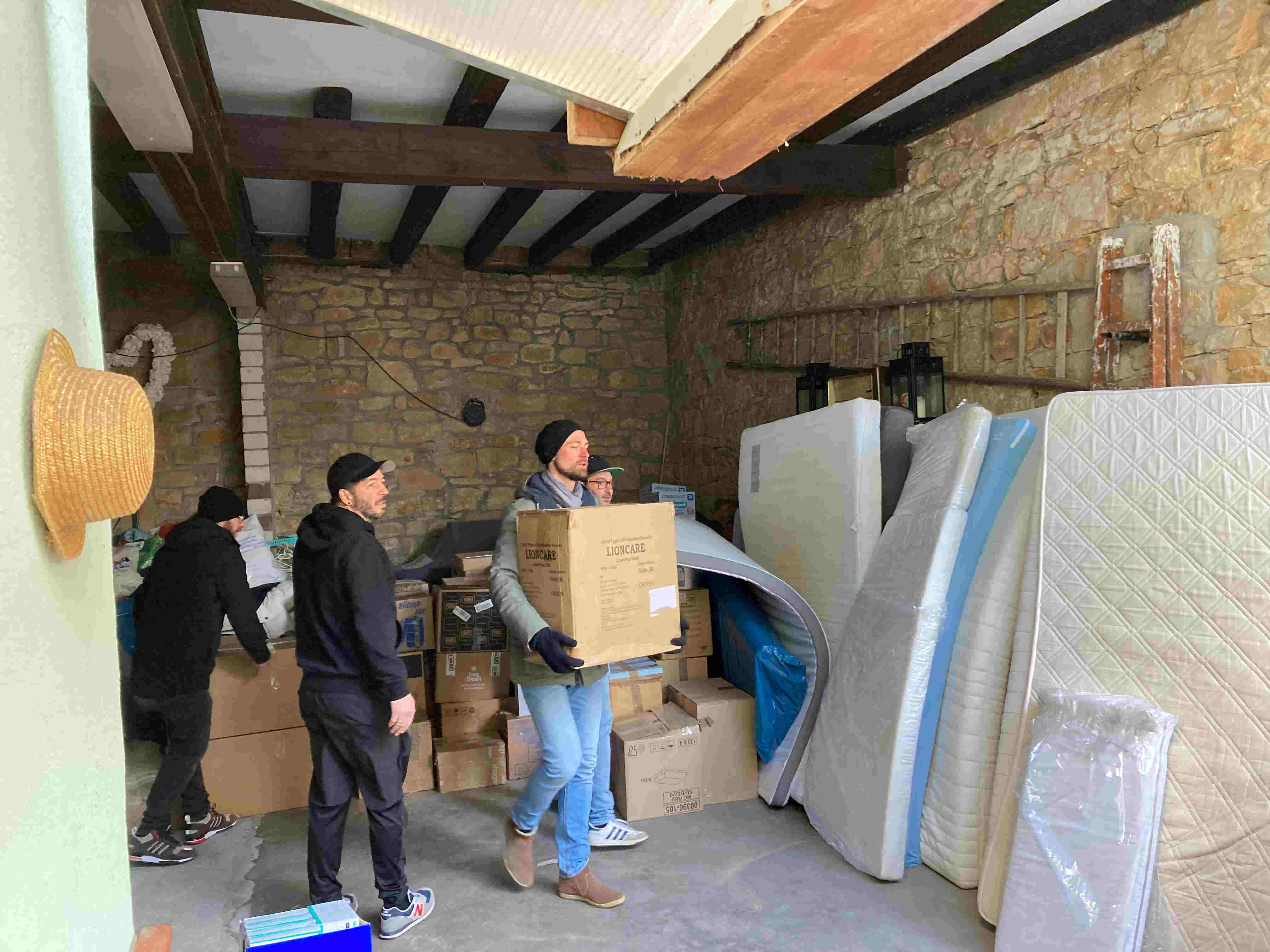 Dort konnten wir viele Freiwillige erleben die beim Sortieren und Packen geholfen haben. Aber auch viele, die mit Spenden dort angekommen sind.
