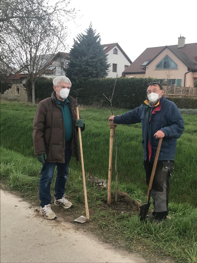 Aufgrund aktueller Coronabeschränkungen konnte die Baumpflanzaktion nur unter eingeschränkten Möglichkeiten stattfinden. Maximal 2 Personen je Pflanzort.