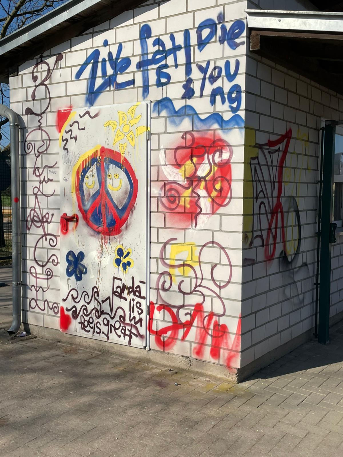 Das Kassenhäuschen am Sportgelände wurde mit Grafiti beschmiert.