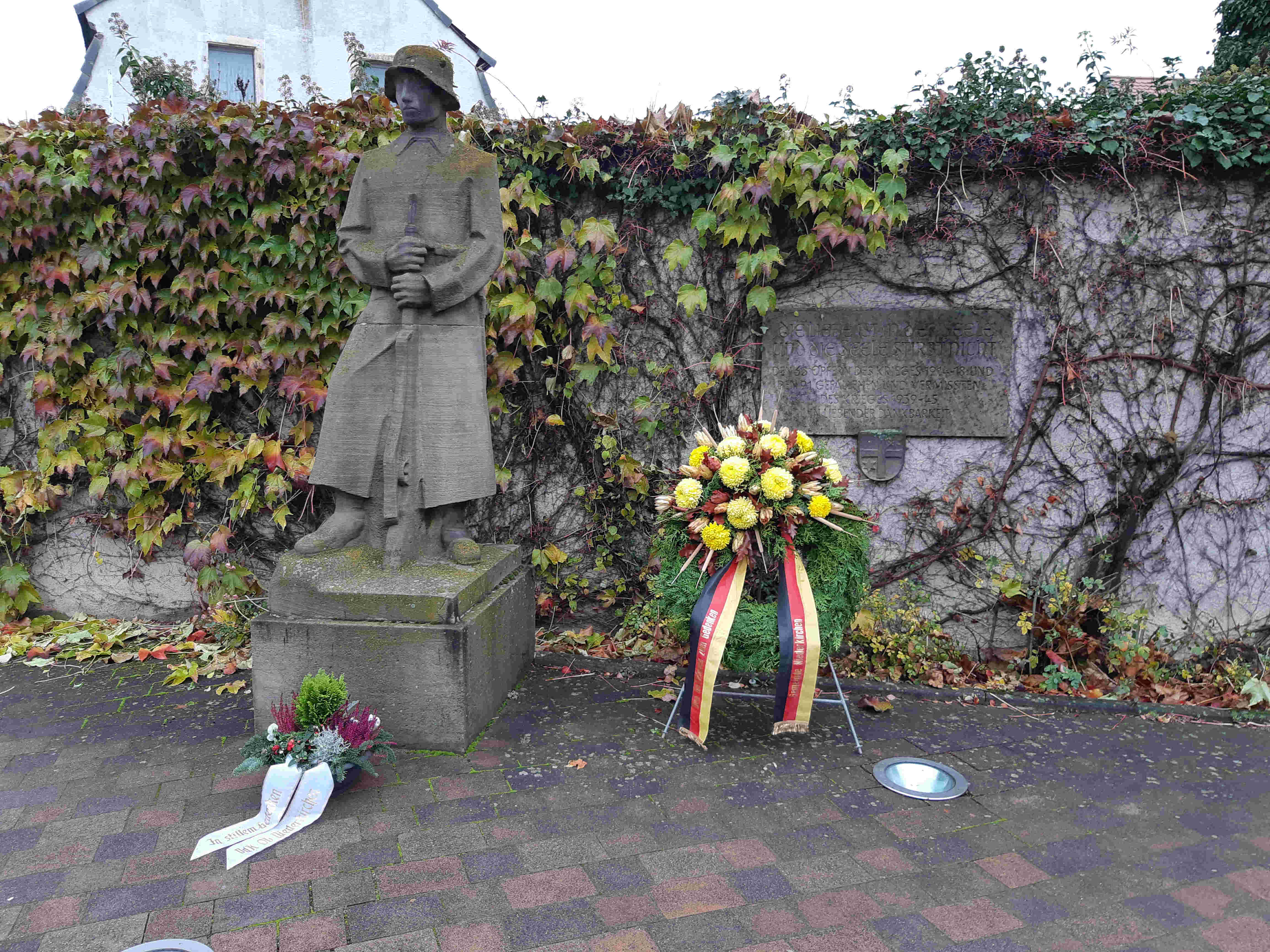 Als äußeres Zeichen unserer Anteilnahme hat die Gemeinde am Kriegerdenkmal einen Kranz niedergelegt.