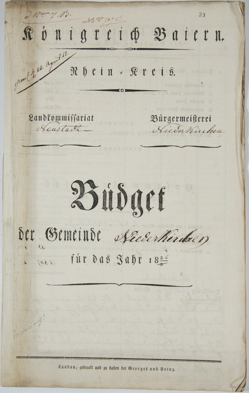 Schriftverkehr über die Teilung der Gemarkungen der Gemeinden Niederkirchen, Deidesheim, Ruppertsberg und Forst in den Jahren 1816 bis 1832